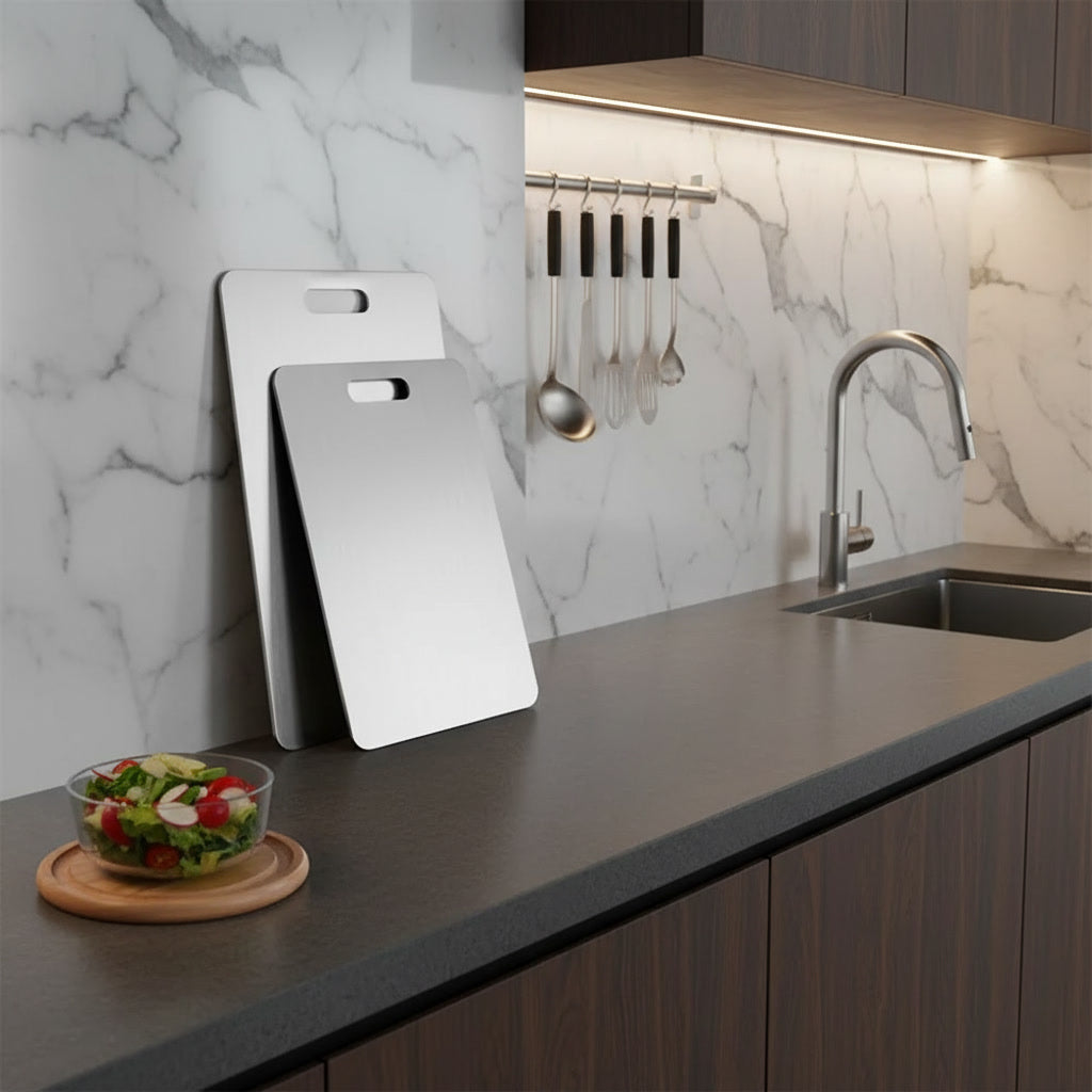 Con la Tabla de Cortar de Titanio, cada corte es preciso, seguro y eficiente, llevando tu experiencia culinaria al siguiente nivel.
